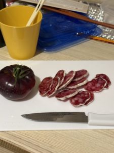 ナイフ(預け入れ荷物へ): サラミ、トマト、ニンニクを切るのに必須。