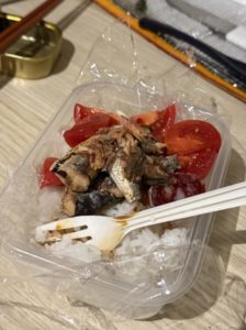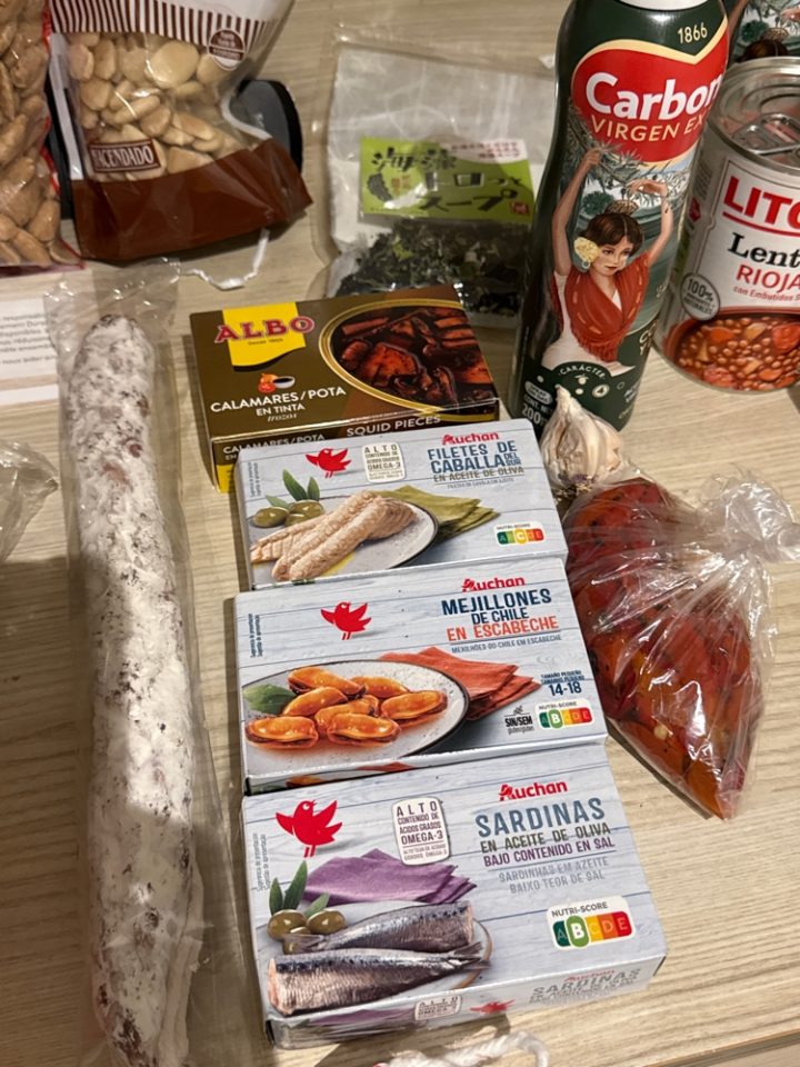 イワシ、イカ墨、サバ、ムール貝と買ったが、いちばんサバが美味しかった。シンプルにオリーブオイル漬けが最高。