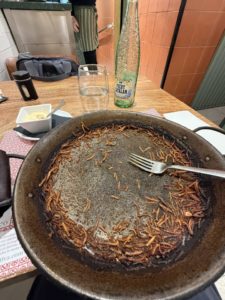 私はムール貝を食べるピッチを上げた。 味わっている場合じゃない、むさぼり食っていいんだ。 「完食!!」と言わんばかりに胸を張って店員に目配せをすると、ようやく空になった鉄板が下げられ、待機していたフィデウアが運ばれてきた。